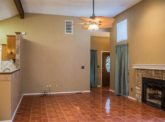 Move in ready ADORABLE HOME!!! You won't want to miss this cute 3 bedroom, 2 bath, 2 car home. Ceiling fans in all rooms. Tile throughout the home. Home was painted on outside last year. All inside doors have been updated. 3 Skylights to bring in LOTS of lighting. Gorgeous fireplace with mantle. TONS of storage. Marble counter tops in bathrooms. Nice Refrigerator stays with home. Master bedroom has huge walk in closet. Master Bath has tiled shower. Two covered patios in your private backyard. You will LOVE this precious place to call home. Don't Miss Out on it!!!!