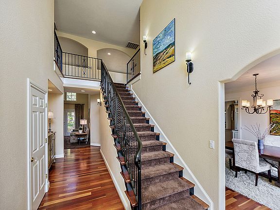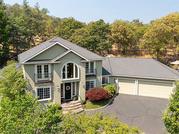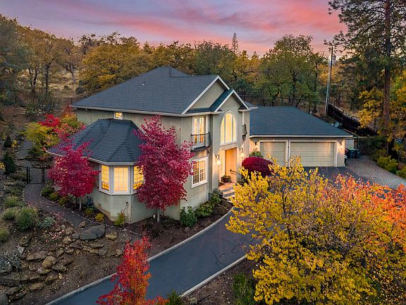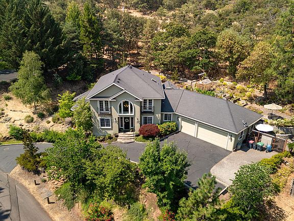 GREAT price for an exquisite home! Located in the Coachman hills, minutes from downtown Jacksonville, this one-of-a-kind, spectacular Tuscan style home was built by Pagnini, a Rogue Valley premier builder. Windows throughout are placed to take advantage of city and valley views. It has tons of character, Brazilian cherry hardwood flooring, quality finishes, and high-end appliances in the gourmet kitchen. Enjoy a meal in either the formal dining room or charming breakfast area. This home offers both a living room and a family room, each with a fireplace. The spacious primary suite on the main floor and has a jetted tub, tile shower, and granite counters in the bathroom. There is also an office on the main level. Both bedrooms upstairs have bathrooms ensuite and large closets. The backyard is a delight. It is in a natural private setting and terraced with low-maintenance landscaping, a hot tub, a greenhouse, and a covered patio with a gas fireplace. Plenty of room in the 3-Car garage.