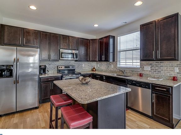 Welcome to this fabulous Fenwick model end unit luxury town home! The main level offers an open floor-plan with 9' ceilings and huge windows flooding the home with plenty of natural light. The kitchen features 42" dark birch cabinetry, a large kitchen island, a pantry, gleaming granite counter tops, a subway tile back splash, and stainless appliances. The large dining area is right off of the kitchen and it is perfect for relaxing with friends and entertaining guests. At the rear, the sliding glass door opens to a large raised deck with white vinyl accents. The living room is wide open and will make you not want to leave. The master suite features a spacious walk in closet providing you plenty of room for all of your things. The master bath offers a double sink as well as a garden tub and separate shower. Two additional bedrooms along with a full hall bath and a conveniently located upstairs laundry complete the 2nd floor. The lower level features a finished rec room that offers extra living space that can be easily used for almost anything your heart desires. Recreation area, play room, study/office - you name it. There is also a plumbing rough-in for a future powder room on this level. Located in the highly sought after Appoquinimink School District and minutes away from Delaware Rt 1 this home has it all. Call to see this beautiful home today!
