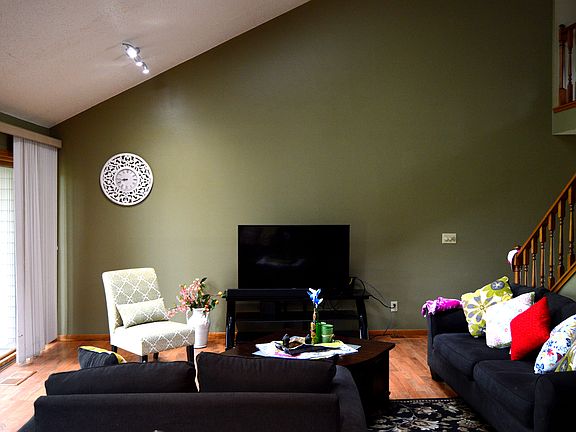 Enjoy condo lifestyle with amazing views of Marshall golf course. Main level has an open floor plan, vaulted ceilings, skylight, and wood burning fireplace. There is plenty of natural light through out. Kitchen has peninsula which swivels, plenty of counter space, cabinets and stainless steel appliances. Washer and dryer on main level along with half bathroom. Master bedroom is on upper level with Jack and Jill bathroom and walk in shower. Upper level also has the second bedroom and open loft area ideal for office space. Basement has a large finished family room and unfinished storage area. New water heater in April 2019 and new furnace in December 2018.