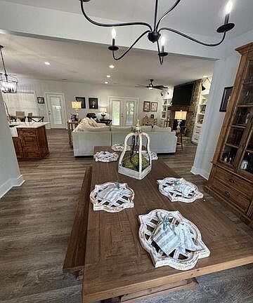 Welcome home to this 4 bedroom 2.5 bath property situated on 1.1 acres, boasting open concept family room, kitchen, dining room and breakfast area. Split bedroom plan. Master suite with coffee/wine bar, large walk in closet. Large master bath with tiled shower featuring rain shower head, soaking tub, his/hers vanities and large linen closet, connecting to huge laundry room with custom built-ins, sink and quartz countertops. Cozy, oversized back porch highlighted by stunning all brick, wood burning fireplace. Porch accessible from master bedroom, family room and breakfast area. Upstairs you'll find 4th bedroom/rec room with extra large walk closet, connecting to floored attic space for added storage. Equipped with tankless water heater. This home has 3-car garage, with storage closet offering ample space for vehicles, lawn equipment and recreational vehicles. Sodded front and back and additional landscaping in progress. Priced below appraisal.