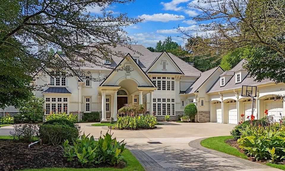 Experience unrivaled luxury and serenity in this one-of-a-kind estate nestled within the prestigious, gated community of Country Club of the South. This exclusive property is distinguished as the finest of only 14 select lots that directly front the majestic Chattahoochee River, out of a total of 250 homes, offering unparalleled river frontage within the community's coveted river corridor. Set on over an acre of meticulously landscaped grounds, this European-inspired masterpiece exudes elegance from the moment you arrive. A grand porte-cochere, flanked by majestic columns, welcomes you to double solid wood doors that lead into a soaring foyer with a 22-foot barrel ceiling and twin wrought iron curved staircases. The impeccably designed interiors showcase exceptional craftsmanship with expansive windows framing breathtaking views of the river and lush gardens. This extraordinary estate features a magnificent formal living room with soaring ceilings, floor-to-ceiling windows, a limestone fireplace, and French doors opening to an upper balcony perfect for entertaining or enjoying the tranquil river vistas. The chef's kitchen boasts state-of-the-art appliances, including twin Sub-Zero refrigerators, Wolf cooktop, double ovens, warming drawers, and extensive quartz countertops with a central breakfast island. An adjoining breakfast room and a sophisticated family room with fireplace and large picture windows create a warm, inviting atmosphere. The luxurious primary suite on the main level offers private access to a veranda overlooking the river, with a sitting area, fireplace, and spa-inspired bath featuring a whirlpool tub, dual vanities, and oversized walk-in closets. Multiple additional bedrooms including a second primary suite each with private en-suites, provide ample space for family and guests. The expansive terrace level is a private retreat, accommodating media and game rooms, a fully equipped exercise suite with sauna and steam room, and a potential golf simulator. Outdoor living is equally impressive, with a resort-style pool, waterfall spa, outdoor kitchen, and large patios perfect for entertaining or relaxing by the water. A gated access to the river allows enjoying this natural wonder from your backyard. Additional features include a four-car garage, parking for over a dozen vehicles, new $350k slate roof and HVAC, elevator service to all levels, and custom architectural finishes throughout. Located in the heart of an esteemed community with award-winning schools, shopping, and fine dining nearby, this estate offers a rare opportunity to enjoy one of the most finest homes in Country Club of the South while enjoying the beauty and privacy of the Chattahoochee River.