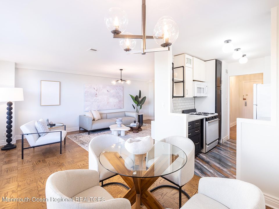 Be in for Summer! Breath taking views of the ocean and lake, minutes to the beach, Asbury Park boardwalk, restaurants, nightlife, and shopping. This one bedroom one bathroom condo in the beautiful Deal Lake tower has everything. Recently renovated kitchen, custom closets, 100sq. ft. balcony. Building has a pool, laundry room, garage/ parking lot, common room for gatherings, bike storage, on site storage units. Some or all Furniture can be negotiated. Utilities included in HOA fees. Can accommodate a quick close.