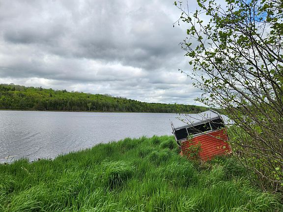 The 200' foot driveway is in good condition. Mixed woods and marshes surround a clearing. A rock wall can be found along the western property line.