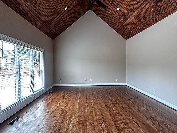 This beautiful 1593 sq ft new construction features 3 bedrooms and 2 full baths in a well established neighborhood. The home sits on a 3/4 acre lot. Hardwood flooring milled from an Amish workshop in Ethridge, Tennessee runs throughout. The vaulted ceiling in the great room displays a gorgeous wood ceiling and plenty of natural lighting. Off the great room you can go outside to your patio for grilling or just relaxing. Back inside, the kitchen features granite countertops with a large breakfast bar for additional seating, raised panel cream cabinets, custom tile backsplash and is equipped with stove, dishwasher and microwave. The master bath has a double vanity, large separate shower and a soaking tub. Large laundry room when you enter from the 2 car garage with plenty of room for storage.