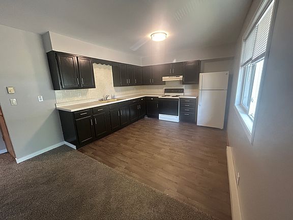 Spacious open kitchenNatural lightEfficient baseboard heatingReliable stove and fridge