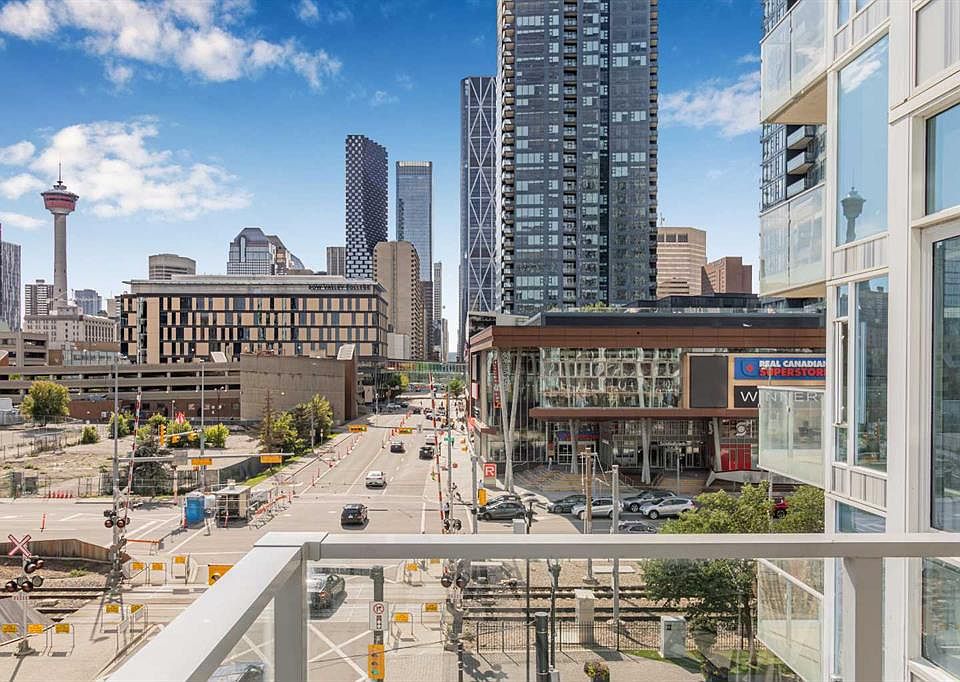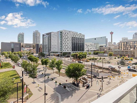 Experience luxury living in this 1 bed, 1 bath condo at the iconic Evolution in East Village. It features floor-to-ceiling windows with views of the Saddledome and Calgary Tower, chef’s kitchen with gas range, granite counters, central air conditioning and ensuite. Enjoy a spacious balcony with amazing Views. This unit comes with storage locker, and premium amenities including 24 hours security/concierge services, fitness centre, sauna, and BBQ area. Steps away from Studio Bell, grocery stores, RiverWalk, LRT, Library, and top restaurants. Don't miss on this "Stunning Living in East Village"— book your private tour today!