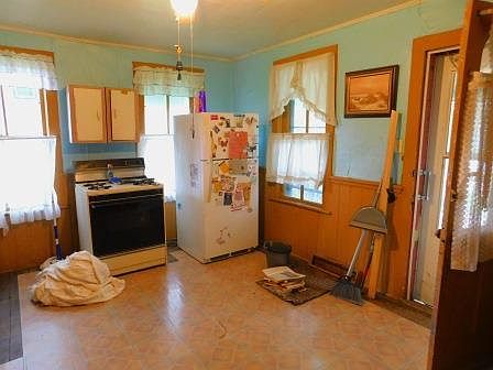 Motivated sellers!!! Bring me an offer on this 2 bedroom/1 bath 1 1/2 story home. The home needs some TLC to bring it back to life and is priced for a quick sale. Main level offers a nice-size kitchen with appliances, an additional pantry storage room, dining room, office nook, living room, full bath and enclosed back porch with laundry and basement staircase. The back porch needs roof/flooring repairs. Upstairs there are 2 bedrooms. There are 2 detached garages on the property but one is probably a tear-down. The other is usable. Property is an estate sale and is being sold in "as is" condition.