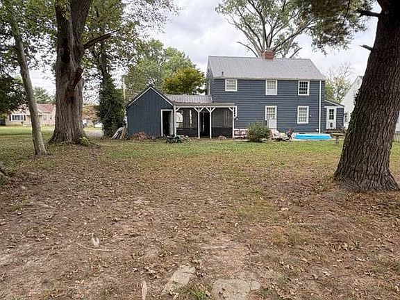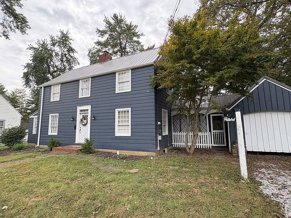 Welcome to your dream farmhouse-style retreat! This charming 2-bedroom, 2-bathroom home beautifully blends modern updates with its historic era, featuring freshly renovated bathrooms and built-in shelving in the living room. Enjoy a formal dining room and a galley kitchen complete with a pantry. The home boasts some original hardwood floors, complemented by newer light fixtures throughout. Stay cozy with hot water heat and cool with a central AC unit just 6 years old. The metal roof, approximately 9 years old, and updated electrical box add to the home's appeal. A breezeway connects the house to a 1-car garage, while the expansive 1 3/4-acre yard offers endless possibilities. Don't miss out on this unique property!