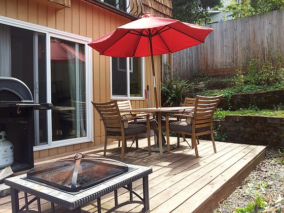 Fully furnished and recently renovated, this 2 bedroom 2 bath townhouse is conveniently located between downtown and WWU, and boasts amazing water and sunset views. The townhouse features a full garage on the street level, a large open living area, kitchen, and laundry/half bath on the first level, and 2 bedrooms with a full bath upstairs. A patio off the main level allows for outdoor seating and dining. Located on a quiet alley, walk to downtown shops, restaurants, bars, and parks in only 5 minutes! Or ride your bike around town and enjoy the security of storing it in a fully enclosed garage. Listed as a monthly rental but available for multi-month stays. 30 day minimum. Available through Dec 20th 2022. Owner pays all utilities. Garage has parking for 1 car + bikes or other items. Another car can park parallel to and in front of garage. Listed as a 1 month rental but available for multi-month stays.