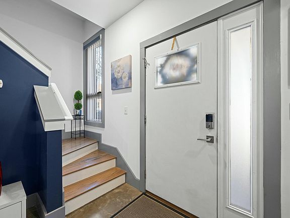 Walk into this home and you will love the concrete floors kitchen and living room. Second floor is a bedroom with a full bath and walk in shower. Third floor could be used as a second bedroom or office . Walk out the sliding doors to the roof top deck to enjoy when you are wanting to entertain your friends or family door to the roof top deck. This unit Entrance is on Main Street walk in.
