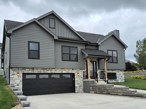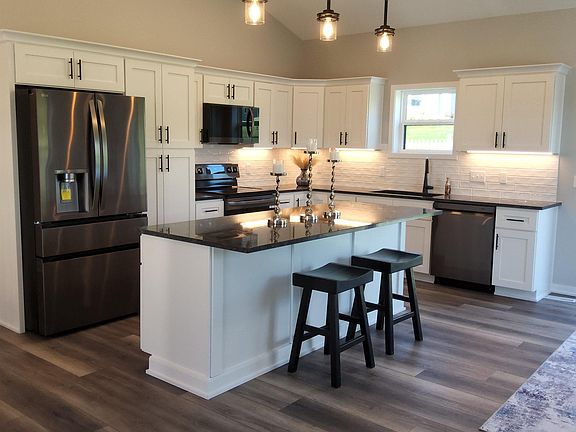 Have you ever wished you owned Brand New Home? You could be the owner of this move in ready 4 bed, 3 bath beauty and have a 2-car extended garage! Built by Hansen Construction in 2024 w/ finishing touches (like the well-established lawn) added in 2025. The kitchen boasts of quartz countertops, a center island w/pendant lighting and never been used appliances! The floor plan includes an open concept kitchen, dining and living area with sliding doors to a durable backyard composite deck. Relax by the fireplace in the living room while enjoying time with family. The master bedroom has a deep double closet and a tray ceiling w/mood enticing lighting as well as a private master bath w/double sinks, quartz countertops and a gorgeous walk-in shower. The main level has 2 additional bedrooms each w/double closets. A full guest bath is situated at the top of the hallway w/beautiful quartz countertop, double sinks and a linen closet. The lower-level family room is a comfortable get away w/a large east facing window. The 4th bedroom w/egress window and double closet is nearby. The laundry area is conveniently situated close to the garage entrance w/the stairway nearby. A walk-in shower, toilet and sink are also located in the laundry room. This property is found in the new addition south of the golf course w/a school bus stop nearby. Call to set up a private tour of this impressive, "priced to sell" home complete w/kitchen appliances, washer and dryer!
