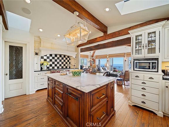 Emerald Bay – often referred to as the American Riviera, is home to this magnificent three-level English Tudor residence offering captivating ocean views and spectacular sunsets. Nestled in the exclusive gated community of Emerald Bay, this home provides ample space and privacy with four spacious bedrooms, each featuring its own en-suite bathroom.