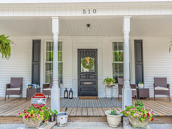 Step back in time with this enchanting historic home. Built in the late 1800s, this picturesque property exudes charm and character at every turn. From the grand entrance with high ceilings, to the meticulously preserved hardwood floors, every detail tells a story of days gone by. The elegant living spaces are perfect for entertaining guests, with spacious rooms and unique fireplaces that create a sense of grandeur. The inviting front porch provides a time to slow down and enjoy the good life. Located in the heart of Rockingham, this home is a rare find for those who appreciate timeless elegance. Don't miss the opportunity to own a piece of history! This home features quartz countertops and a spacious center island, gold /brass pulls and knobs, and antique chandeliers and fixtures. Mudroom with built-ins, floor to ceiling windows, glass knobs and original hardware, beautiful fluted moldings, and 5 panel solid wood doors. The master suite is located on the main level with attached laundry. Additional powder room is located right off the mudroom. Upstairs includes 3 massive bedrooms that can easily fit 2 beds each. The guest bathroom features a soaker tub and pedestal sink. All new appliances included!