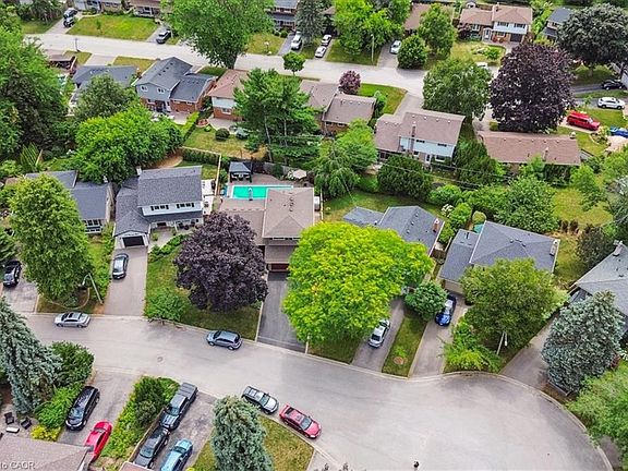 Tucked away in a peaceful cul-de-sac in South Burlington, this charming 3(+1) bdrm, 2 bth home offers the perfect blend of comfort, convenience, and outdoor luxury. The front is beautifully landscaped with a welcoming private front porch to sit and enjoy your morning coffee. Inside greets you with a open-concept kitchen that seamlessly overlooks the bright living and dining areas, ideal for hosting friends or cozy family dinners. The upper level features 3 generously sized bedrooms and a updated 4th piece bath with ensuite privileges. Just off the kitchen and on the ground level, a warm and inviting family room awaits, complete with built-in shelving and direct walk-out access to your private backyard oasis, you'll find everything you need for entertaining or unwinding: a stunning pool (pump, filter, & heater 2021), hot tub (2024), gazebo, outdoor bar, and beautifully landscaped surroundings all designed to create your personal private retreat. Inside, the ground floor also features a stylish laundry space (washer/dryer 2023) and 3-piece bathroom. The lower level offers a versatile bonus room perfect for movie nights/game days as well as a possible fourth bedroom/home office/workout space. You'll also appreciate the ample storage in the large crawl space. A large double-car garage completes this picture-perfect package. Located minutes from shopping, downtown Burlington, the QEW, and Fairview GO station, this home offers effortless access to everything the area has to offer while maintaining that serene court-side setting. Don't miss your chance to experience this beautifully cared for family home!