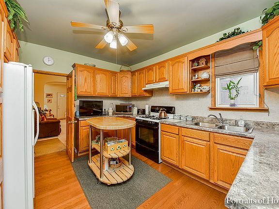 CUTE TURN-KEY ready, 2bd/1bath home in Joliet! Sep living/dining rm w/neutral carpet. Kitchen w/wood flrs & tile backsplash. Unfin cellar style basement w/laundry area. Beautiful, large yard. Detached 2-car garage. Close to grade schools, commuter bus, train station & I-80. Perfect for owner-occupied or investors!