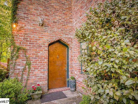 "El Taarn" is one of Tryon's grand, historic homes. Built in 1921 on a narrow mountain spur to be the studio home of collectible artist Homer Ellertson.... a work of art in itself, it features a polygonal tower with Tudor copper doors and winding staircases. French doors open to private balconies feature custom ironwork designed by Ellertson. Windows abound and serve as a frame to view the gardens and rock lined paths below with expansive views of the mountains in the winter. Interior features include a formal dining room off the kitchen with numerous built in shelves and cabinets and French doors opening to a fabulous screened porch. The Living Room also has built ins and a masonry fireplace fitted with gas logs and hardwood floor. There is a breakfast area in the kitchen and it opens to a sun room with tile floor. The second level features hardwood floors throughout. The master bedroom with exposed beams, built ins, and a spacious dressing room lined with closets and a full bath. Off the hall is the "dog watch", where Ellertson's dog could keep is eye on guests entering the front gate. There is also a guest bedroom with it's own full bath on the opposite end of the hall. The third floor is the location of the great room that served as the studio for Homer Ellertson, as well as a very spacious additional guest bedroom and bath. The basement level is walk out and contains the mechanical components for the house as well as a full bath and bedroom. There is also a spacious storage room and shop area. Other household features include an elevator that goes from the basement up to the third floor, individual cooling units are in all rooms and also the basement level bedroom which serves as both heat and air. This unique property offers sophisticated and inspirational setting well worth consideration!