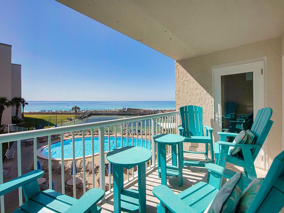 Experience Pool & Gulf views from your very own condo! Welcome to your coastal retreat in the heart of Destin, Florida. Enjoy breathtaking views of the sugar-white sands and emerald-green waters from this beautifully updated 2-bedroom, 2-bathroom Gulf-front condo located in the highly sought-after Holiday Surf & Racquet Club.This third-floor residence offers nearly 1,000 sq. ft. of heated / cooled living space, along with a spacious 39 sq. ft. balcony overlooking the shimmering Gulf and resort-style pool. Inside, you'll find tile flooring throughout, granite countertops, new high-impact windows and doors, and a washer/dryer for added convenience. The condo is sold fully furnished and rental-ready, making it a turnkey opportunity for both investors and those seeking a luxurious second home.