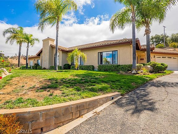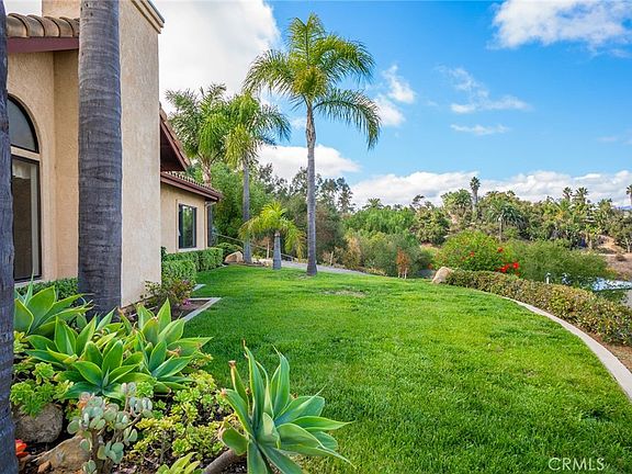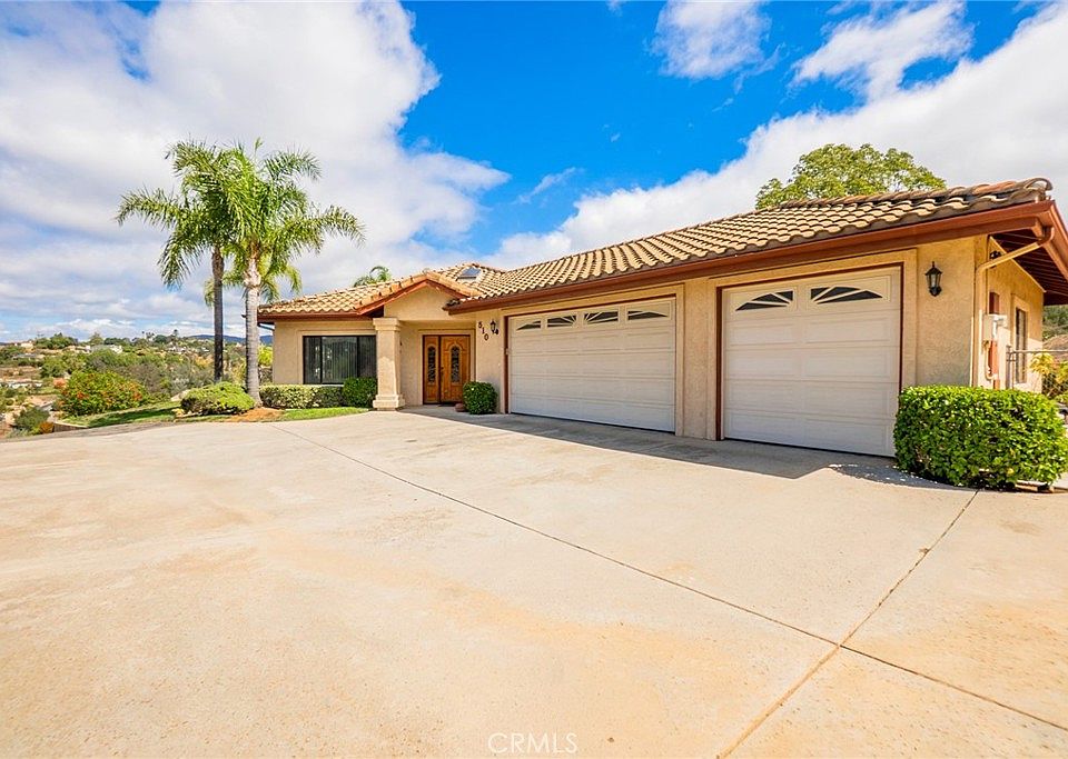Beautiful single-story custom home on nearly 4.5 acres with stunning mountain and valley views! Approx. 2,740 sq. ft. with 3 beds, 2.5 baths, vaulted ceilings, and open floor plan. Spacious kitchen with island and large dining area. Primary suite offers patio access and spa-like bath. Enjoy peaceful outdoor living surrounded by mature fruit and macadamia trees. 3-car garage plus separate RV garage at the base of the property and PAID-OFF solar! Private, serene setting just minutes from downtown Fallbrook!