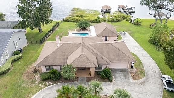 Lakefront Home on Lake Arietta – Endless Potential in Auburndale! This spacious lakefront property offers exceptional versatility and room to grow. The main residence features three bedrooms and three full bathrooms, with an inviting floor plan designed for both comfort and entertaining. On the main level, you’ll find a formal living and dining room with wood floors, and a bright kitchen with a large breakfast nook overlooking the enclosed Florida room. The expansive primary suite includes an en-suite bath with a generous walk-in shower, dual-sink vanity, and walk-in closet, plus direct access to the Florida room. Two additional bedrooms and a guest bathroom complete this level. The lower level offers a large family room with a brick-clad fireplace and built-in bar, a spacious den that could easily serve as a fourth bedroom, and another full bathroom. Sliding doors open to a screened porch overlooking the pool and the tranquil waters of Lake Arietta. Outdoors, you’ll find a detached guest cottage or mother-in-law suite complete with a kitchen and full bathroom—ideal for guests, extended family, or potential rental income. Sitting on just over 0.6 acres, this property also includes a private dock, perfect for boating, fishing, and enjoying sunset views on the lake. Bring your vision and make this one-of-a-kind lakefront property your own!