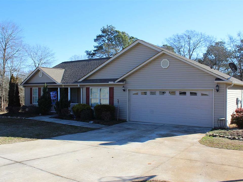 WILL NOT LAST LONG! OVER AN ACRE IN DISTRICT 5! Make this house your new home! The front porch is just waiting for your rocking chairs. Enter the over sized living room and be greeted by laminate floors with woodlike appearance. The vaulted ceiling makes this large room feel even bigger. To the right you will enter the dining room that connects to the large eat-in kitchen. Ceramic tile floor and beautiful back splash make this kitchen a huge hit!. Head into the owner suit and see vaulted ceiling, ceiling fan and walk in closet. The connecting bathroom has separate garden tub and shower along with double vanity and tile floor. The other 2 bedrooms are nice sized. One is getting new carpet. The deck out back is waiting for you and your loved ones to have a cookout as you entertain in your over-an-acre yard. This gem won't be on the market long so call for your appointment today! Fireplace in living room is portable and does not convey.