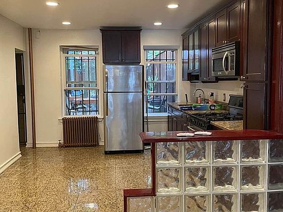 OPEN HOUSE BY APPOINTMENT April 17th 4pm-6pm Charming 1 Bedroom Apartment with Lush Backyard Garden & Sauna Available May 1, 2025 Discover your new home in this lovely garden floor apartment, boasting abundant natural sunlight and modern features throughout: Spacious & Stylish Living: 1 cozy bedroom with hardwood floors 3 closets for all your storage needs Modern Amenities: Stainless steel appliances Granite countertops Floor-to-ceiling granite bathroom Microwave included Unique Features: Exposed brick. Large backyard garden complete with a sauna for ultimate relaxation Hot water/Heat & Cooking gas included. Tenant only responsible for electricity. Please Note: A Broker's Fee is associated with this listing. Short walk to Laundrymat, Supermarket, Bars & Cafe's. A/C Express Train @ Utica Ave or Kingston Throop within 10 minutes. Don't miss out on this perfect blend of modern comforts and unique character. Contact us today for more details and to schedule a viewing!
