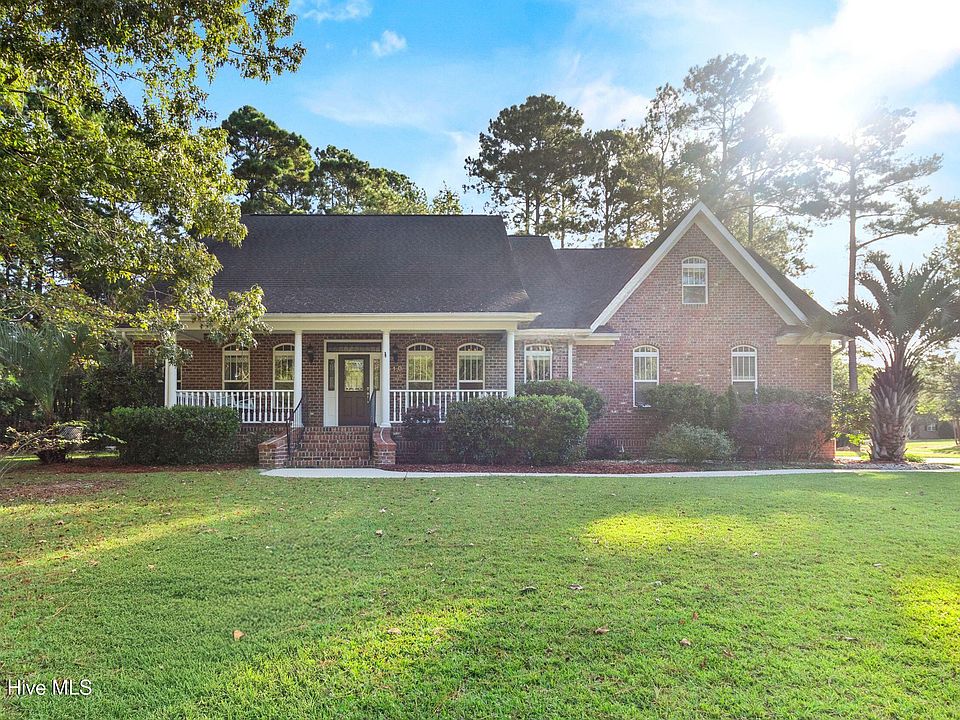 Welcome to Waterberry Plantation, a small and exclusive gated community in Leland, just minutes from Historic Downtown Wilmington. Just a short walk from the clubhouse, pool, and tennis courts, this elegant 2,700-square-foot brick home sits on a corner lot and offers plenty of space for family, guests, and entertaining. A classic southern front porch, perfect for relaxing in a swing, welcomes you inside. The split-bedroom floor plan includes three bedrooms and two full baths. The primary suite features a tray ceiling, Hollywood-style closet, and a large soaking tub for unwinding. Upstairs, a spacious bonus room provides the flexibility to serve as a fourth bedroom, home office, or second living area. The kitchen includes a new tile backsplash, dedicated workspace, and separate pantry, while the laundry room offers a handy drop-down folding surface. The private backyard spans nearly three-quarters of an acre, where you can enjoy meals in the screened porch or on the open deck. An outbuilding with electricity makes an ideal workshop, studio, or hobby space, and the oversized two-car garage provides abundant storage with built-in shelving and a workbench. This home combines comfort, function, and privacy in a sought-after community—truly a rare opportunity.