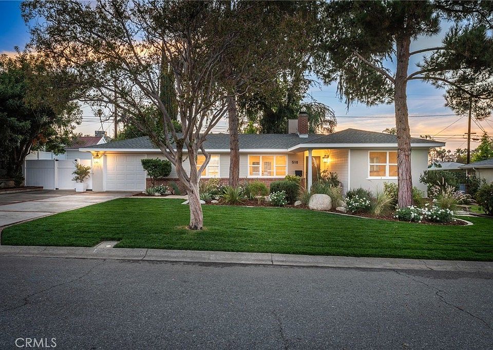 Charming and Quiet - Stroll this friendly neighborhood and discover a meticulously upgraded mid-century home on a peaceful looped cul-de-sac east of Downtown Redlands. It’s easy to fall in love with this warm and inviting single-story charmer adorned with classic shiplap and brick siding. Inside, hardwood and new travertine floors reveal a character-rich home, while a wood-burning stone and travertine tile fireplace warms the living room during the winter months. Newly renovated in 2025, the home’s recent upgrades continue to build on its existing character! Improvements include: white quartz counters, new stainless steel sink and appliances, a new bathroom vanity, an updated dishwasher, stove, and wine cooler, and brand new Electrolux washer and dryer. Behind the walls, there is updated wiring and electrical, as well as copper plumbing. There are more upgrades outside, with new fascia, paint, exterior lighting, and a brand-new vinyl fence. The front and backyard have been recently landscaped and have received new sod, newly planted shrubbery, and cypress. Grow your own produce in the raised garden bed or relax on the front porch where shade trees provide coolness, comfort, and privacy. Part of the Redlands School District and located near Redlands High School and the University of Redlands. You’ll have easy access to the 10 freeway, grocery stores, and other shopping. Yet the neighborhood itself remains calm and relaxed, safe in its own quiet harbor.