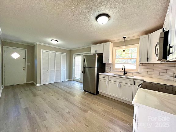Beautifully remodeled home with lots of space out back! With a huge deck and over a quarter acre this property has everything you need on a quiet street! Inside, wood floors greet you with a bright sitting room. The new kitchen has quartz countertops, white cabinets, and SS appliances. No HOA and a great location close to schools, shopping, and the highway to Charlotte. What a great price for this property!! Seller is offering a $5,000 credit to help with expenses or a rate buy down!