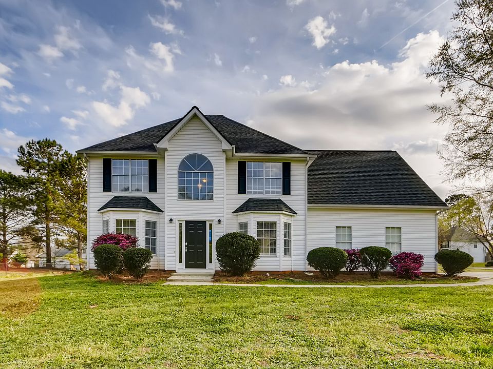 A huge yard, high ceilings, and gorgeous landscaping are just a few amazing features of this 4 bedroom and 2.5 bathroom home situated in the Evergreen Estates area of Monroe! Head inside where you are immediately greeted by a two-story foyer. You are then flanked by the living room that features bright windows and a fireplace. Stone countertops are showcased in the kitchen, as well as a breakfast nook with a great view of the backyard. The upstairs primary bedroom has a tray ceiling as well as an attached bathroom with a separate tub and shower!