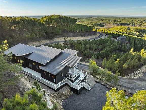 Welcome to ‘Stella Vista’, a stunning 3-bedroom, 3-bathroom modern rustic cabin perched atop a breathtaking cliff in Carter Mountain West Phase II. Designed to blend luxury with natural beauty, this cabin offers unparalleled views of Broken Bow's sweeping landscapes, vibrant sunsets, and the serene ambiance of the Kiamichi Mountains and Ouachita National Forest. Step into the open-concept living and kitchen area, where floor-to-ceiling windows frame mesmerizing mountain vistas, ensuring that every room showcases the beauty of the outdoors. The living room features a grand stone fireplace, creating a cozy yet majestic atmosphere, perfect for relaxing after a day of adventure. The chef-inspired kitchen boasts a massive quartz island, state-of-the-art appliances, and a dining table for eight, complemented by additional seating for five at the island—ideal for entertaining or enjoying family meals while taking in the spectacular views. The two main bedrooms are true retreats, each offering king-sized beds, luxurious linens, 55" TVs, and private ensuite bathrooms. The third bedroom is a versatile haven, featuring two built-in queen beds, a full-sized sleeper sofa, a retro arcade game, and gaming consoles like the Nintendo Switch and Wii, making it perfect for kids or adults seeking a playful escape. Outside, the expansive deck is a haven for relaxation and entertainment. Gather around the outdoor fireplace, toast marshmallows at the fire pit, or unwind in the covered hot tub as you soak in the serene surroundings. With ample seating and unparalleled views, the outdoor space is perfect for creating lasting memories. ‘Stella Vista’ delivers the perfect combination of upscale design and natural beauty, offering a peaceful retreat for families and groups. Don’t miss the opportunity to make this extraordinary cabin your own and experience the best of Broken Bow living!