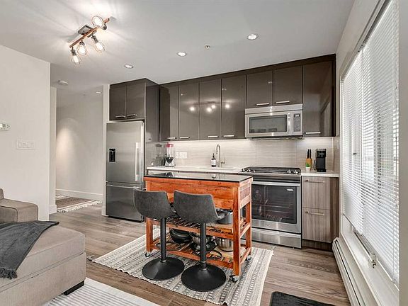 Nestled in the heart of Bridgeland — this stylish top floor one-bedroom offers the perfect blend of modern design and urban convenience. Inside, the unit is in immaculate "like new" condition. The kitchen boasts a sleek galley-style layout equipped with high-end appliances (gas range!), Quartz countertops, and laminate flooring. The open-concept design seamlessly connects the dining and living areas, creating a very functional layout. The bedroom is large with full closet and TV mount already installed. Step out onto your balcony to take in the views of the green space.. The unit has full size washer and dryer. Residents enjoy a host of amenities, including secure underground titled parking, a private storage locker, bicycle storage, access to a beautifully landscaped courtyard, and a fully equipped fitness centre. Schedule your private viewing today.