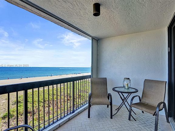 Stunning 2-bedroom unit with breathtaking unobstructed ocean views, located directly on the sand in Pompano Beach near the Pier. Situated on the 3rd floor, it offers a spectacular vantage point of the Atlantic. Floor-to-ceiling window in the master bedroom allows you to wake up to the ocean every morning. Fully furnished beach retreat in a beautifully updated five-story Mid-Century Modern building brought up to today’s standards. Features include impact windows, private patio, washer/dryer in unit, and an open coastal layout. Amenities: private beach access, heated pool, fitness center, sauna, on-site security, elevators, meeting room, exterior storage locker, and one garage parking space. NO pending assessments and PLENTY of reserves—an exceptional opportunity to own a true beachfront escape.