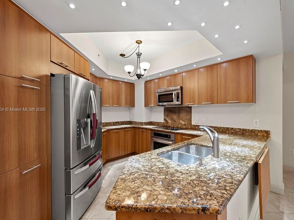 Completely upgraded condo featuring tile floors throughout, granite counters, and stainless steel appliances. Built-in closets and high-impact doors and windows add both style and security. Enjoy serene pool views and resort-style amenities including a tropical heated pool, hot tub, sauna, clubroom, and fitness center. Building offers 24-hour concierge, on-site management, and advanced security cameras. Includes water, internet, cable TV, and two assigned garage parking spaces. Master bath with marble shower and soaking tub. Washer/dryer and Smart Key FOB entry complete this luxurious residence.