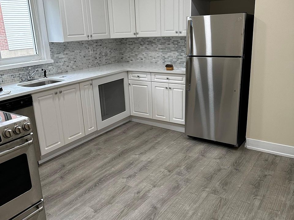 Entrance in leads to multi-purpose room ,then ahead into living room with fireplace & bedroom off to immediate right.Continue straight to kitchen then short hallway to bathroom on right with stackable washer/dryer then onward to second bedroom at rear of hallway. Renters responsible for heat and water.No smoking allowed.Five room apartment in owner occupied 2 family house.No subletting allowed.One year lease.Business couple preferred.Back to back parking for 2 cars available onsite.Proof of income required.