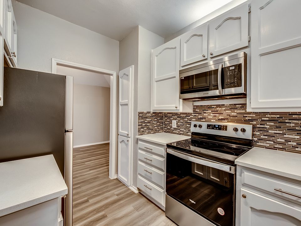 Contemporary grey-neutral paintNew carpet in bedroomsUpdated backsplashNew vinyl plank flooringTons of storageNew quartz countertopsNew stainless steel appliances