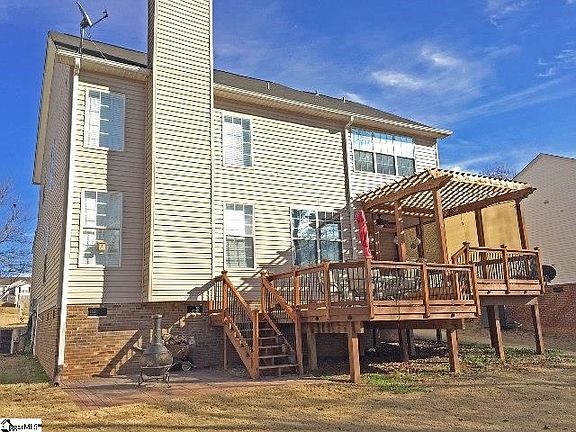 Convenient location in Mauldin, just 20 minutes from downtown Greenville and 15 Minutes from Woodruff Road Shopping. Very well maintained home shows like a model. The spacious open floor plan includes a formal dining room with crown molding, Open kitchen with smooth top stove, built in microwave and large pantry. Living room is open to the second story and has a wood burning fireplace. The home features upgraded light fixtures & ceiling fans, beautiful hardwood floors, and rounded archways. The sunny breakfast room has french doors that open to the screen porch and massive 24X14 multi-level deck with pergola--perfect for entertaining guests. There is also a 12X12 stamped concrete patio giving you plenty of room outside to enjoy the beautifully landscaped yard and views of the pond. Back inside, an oversized master suite awaits with vaulted ceilings, separate shower, garden tub, double sink vanity and large walk in closet. Across the hall is 2 nice bedrooms with jack and jill bath. Laundry on upper level means no carrying baskets up stairs. Located in sought after neighborhood with amenities including the playground, swimming pool with covered picnic and grilling area along with kiddie pool.