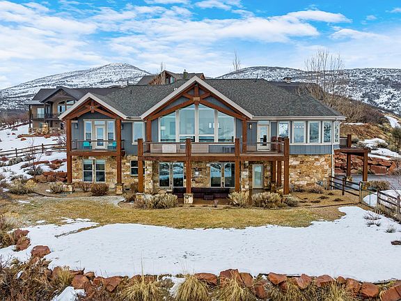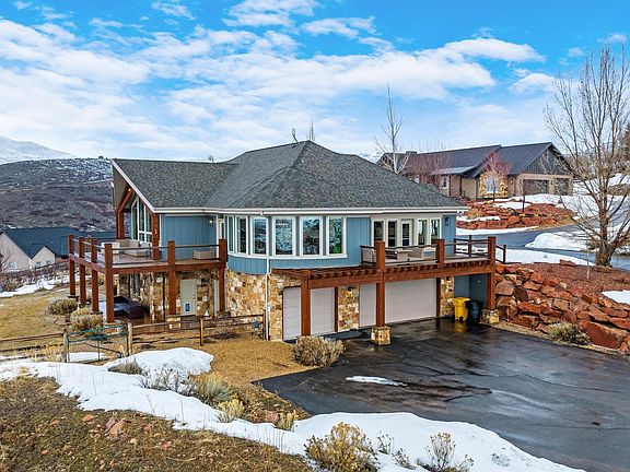 Welcome home to this fully remodeled, peaceful retreat with unobstructed views of the Heber Valley and Mount Timpanogos! Thoughtfully redesigned in 2020 the kitchen, dining room, and great room are an entertainers dream featuring high end appliances, two islands, custom cabinets with ample storage, and a hidden butlers pantry with wet bar and ice maker. The great room has vaulted ceilings, and floor to ceiling windows allow natural light and amazing views of the valley below. Enjoy a cozy master suite with private deck and guest suite in the walkout basement. There are two more bedrooms on the main floor and a large family room and office/den round out the basement. Two more decks and a covered patio provide ample outdoor living spaces or enjoy the fenced backyard. Big Pole Estates includes 528 acres but only 38 homesites, resulting in wonderful open spaces and trails. Agent owned. Square footage figures are provided as a courtesy estimate only. Buyer is advised to obtain an independent measurement.
