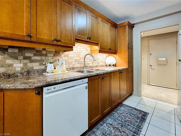ESTATE SALE OPPORTUNITY! Gorgeous 2 bedroom 1000 sqft unit features MAPLE kitchen with crown moulding, under cabinet lighting, plenty of storage & tall pantry. 4 appliances stay; fridge, stove, dishwasher & built-in microwave. No carpeting here in this awesome home; tile flooring in foyer, kitchen & bathroom. Laminate flooring in living room, dining room & bedrooms. The 5 pc bathroom will impress. Features oversized maple vanity with double sinks & plenty of storage. Comfortable, high toilet, brushed nickel fixtures, lovely mirrors & recently caulked tub (2025). Both bedrooms are spacious with large closets and an oversized window for plenty of natural light. Classic series 800 doors installed throughout; loads of closet space, plus LOCKER #108 located on the main floor, same as unit. Massive balcony is 5’6” x 45’ in length! Ideal for fresh air, summer days & star gazing nites. Laundry room is steps away & conveniently located on the main floor, just off the lobby. Private PARKING SPOT #58. A rare offering with premium improvements; move-in ready with flexible closing possible here! Stellar East Hamilton location. Steps to No Frills, Freshco, Starsky, Canadian Tire, Dollar Tree, Eastgate Mall, Transit & quick access to Redhill Parkway, QEW Highway (minutes to 407, 403 & GO Station), Excellent schools, restaurants & MORE! Quiet, accessible building; only 5 levels & you are sure to fall in love!