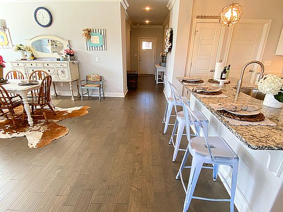 Immaculate, almost new home w great floor plan and owner upgrades of extensive hardwood floors, and privacy fence. kitchen has lots of custom cabinets w upgraded drawer guides and closers, and large pantry. kitchen is open to large living room w gas log fireplace. large master suite w huge closet + plus linen closet, separate potty room, tiled shower w bench and whirlpool tub. Lots of windows for great natural light, and covered patio. No home behind with little traffic on lane. wood floors throughout, except bathrooms. floored attic storage, all brick exterior