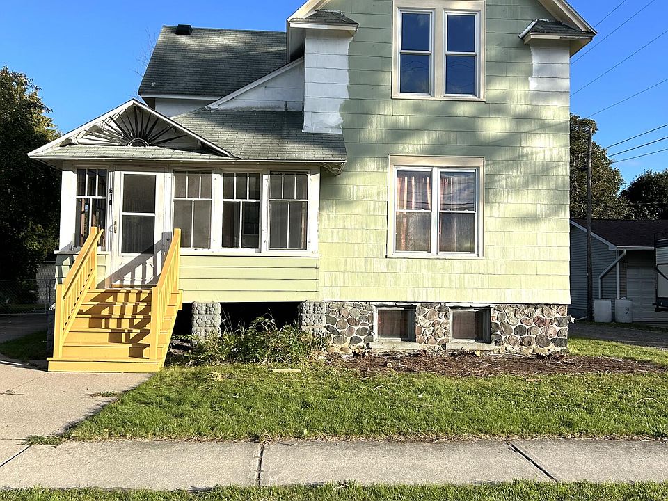 Welcome to this charming 1+ story gem with a freshly painted exterior, set on a large fenced lot and offering flexible living options. The main floor features a bedroom, full bath and dedicated laundry — ideal for one-level living. The unfinished basement adds storage and additional hobby room potential. This home is currently used a single-family home but is perfectly suited for conversion into a duplex with separate entrances. The upstairs provides 2 additional bedrooms, a second bathroom, plus a sink and 220V outlet ready for a kitchen installation. The detached 20x30 garage offers a great space for a workshop. Embrace the opportunity to personalize this versatile property and maximize its investment potential