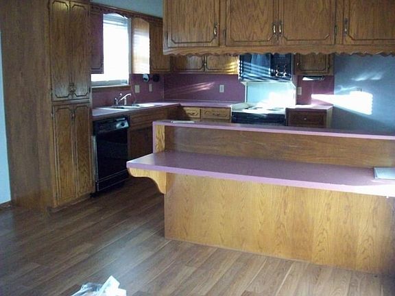 Nice brick home on a spacious lot. Large living area with 2 built-in bookcases. Kitchen has lots of cabinets and pantry space, breakfast bar, dishwasher, range, and microwave. Dining area with patio doors leading out to backyard. Master bedroom with adjoining bath. 2 guest bedrooms and full bath. New vinyl flooring throughout entry hallway, living room, dining area, and kitchen. There is a utility area with storage and a large attached garage. Storage building, storm cellar and small carport.