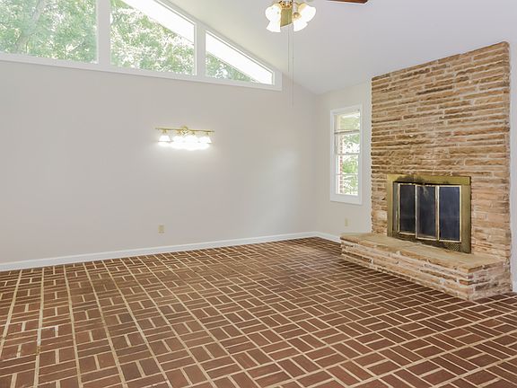The kitchen features abundant cabinetry, built-in appliances, and direct access to the breakfast nook, making meals and entertaining simple. From there, you can flow easily into the large living room, complete with tall ceilings, eye-catching windows, and a brick accent wall. A separate bonus room lined with built-in shelving creates even more possibilities for hobbies, work, or relaxation. The main bedroom offers generous space, a walk-in closet, and an en suite bath, while additional bedrooms are well-sized with convenient storage.