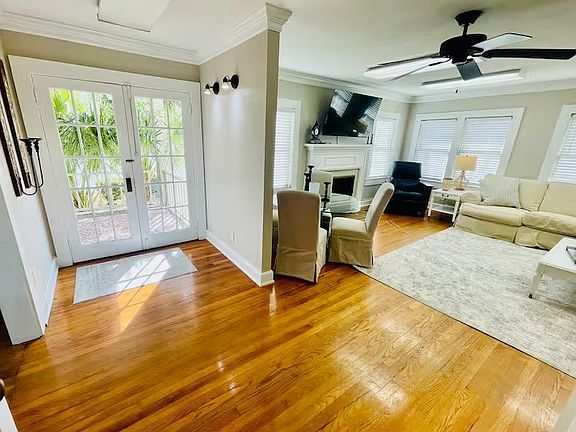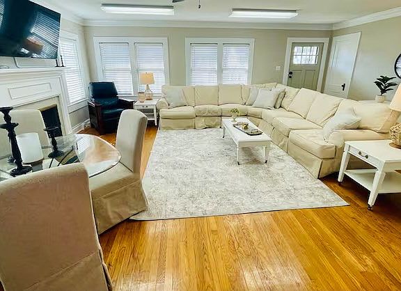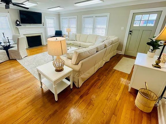 Cozy wood burning fireplaceFully furnished brick homeSide porchOriginal hardwood floors