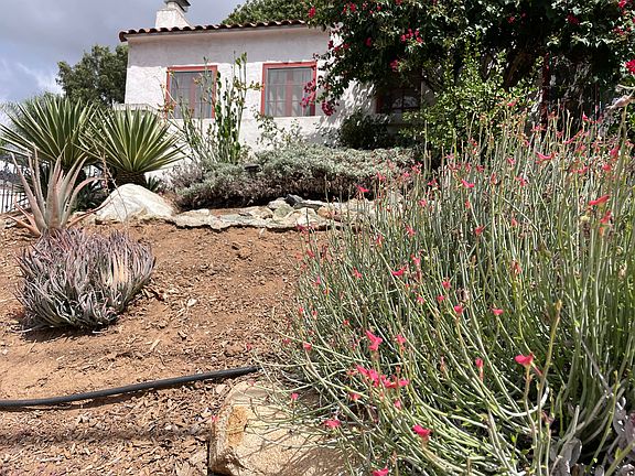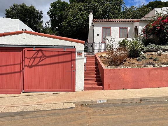 Charming and historic Mediterranean revival, single-family home, built in 1930. Elevated above street with very private living space and yard (patio, BBQ). 2-car garage for storage at street level. Newly painted; hardwood floors; clean and cozy. Walk into downtown Escondido and to public transit.