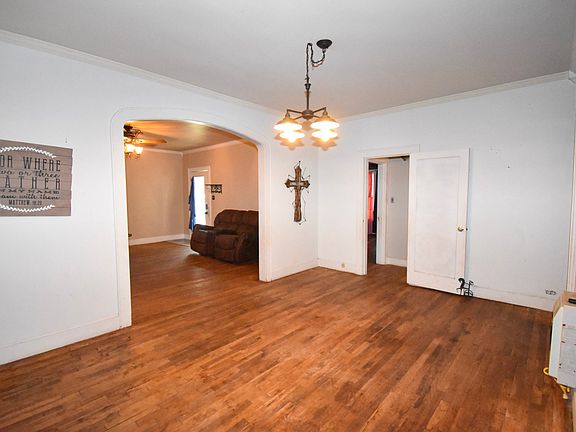 Nestled among mature trees this inviting 4-bedroom, 2-bath home blends character and functionality. Original hardwood floors bring timeless warmth, while tall living room windows fill the space with natural light and peaceful views. The spacious yard offers plenty of room to enjoy the outdoors, complete with a producing peach tree for homegrown harvests. City water services the home, while a private well keeps the yard lush year-round. A large detached garage with a workshop and an additional storage building provide ample space for projects, hobbies, and organization. This property combines charm, space, and utility—ready to welcome its next owners.