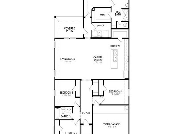 The Harris floorplan is a beautifully designed single-story home offering 2,040 square feet of open, functional living space. With four bedrooms and two full bathrooms, this layout maximizes flow and flexibility for a variety of lifestyles. The heart of the home is a spacious kitchen with a central island and casual dining area that opens into the oversized living room—perfect for gathering or unwinding. The private primary suite includes dual walk-in closets and a spa-inspired bath with a tiled walk-in shower, dual vanities, and premium finishes. A covered patio extends the living space outdoors, while the dedicated laundry room and two-car garage add everyday convenience. Designer finishes like quartz countertops, sleek tile flooring, shaker cabinets, and Moen chrome fixtures come standard . Energy-efficient features such as a tankless water heater, radiant barrier roof decking, and a SEER 2 Lennox; AC system ensure both comfort and cost savings year-round.