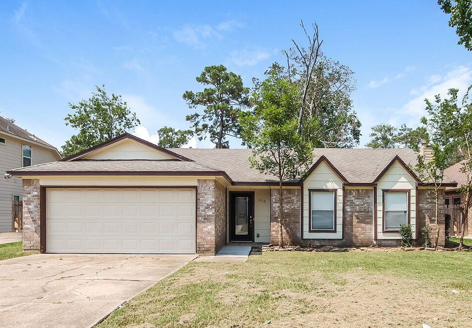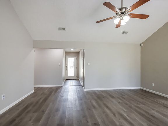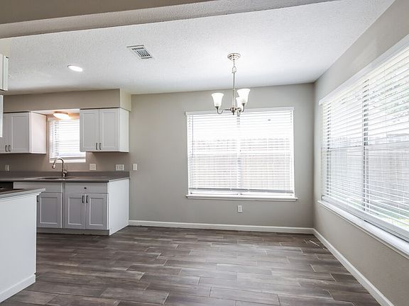 Please note, our homes are available on a first-come, first-serve basis and are not reserved until the lease is signed by all applicants and security deposits are collected. This home features Progress Smart Home - Progress Residential's smart home app, which allows you to control the home securely from any of your devices. Want to tour on your own? Click the "Self Tour" button on this home's RentProgress. Two patios and a grassy area are great for entertaining in the backyard of this three-bedroom, two-bathroom rental home in Crosby, Texas. Access it via the spacious living room, which includes a vaulted ceiling accented by a lighted fan. An adjacent dining room has side- and back-facing windows that fill the room with a wonderful amount of natural light. A chandelier brightens the room after the sun goes down. Down the hall is the main bedroom, complete with an en-suite bathroom, featuring a gorgeous single-sink vanity with storage. Schedule time now to visit this rental home.