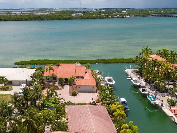 Exquisite Island Living Open Water + 300 ft concrete dock offering ample dockage for all your boats and watercraft, stunning Breathtaking Sunset from almost every room in this spectacular 2907 sq ft. home welcomes you to this piece of Paradise 4 bedrooms, 3 ensuite Bedrooms+ 2 half baths, walkup the curved staircase to 425 ft. upstairs loft/bedroom with sliders to Balcony overlooking the Pool and Sunsets, enjoy your stunning Kitchen with granite counters, huge living and dining room with sliders to Lani overlooking pool, , 2 car garage with door that offers easy loading of fishing gear, plenty of outdoor living, 2 boat lifts 24,000 lb & 12,000 lb., this location boasts some of the finest fishing in the keys.