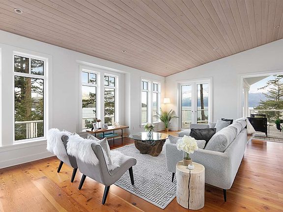 Set on 1.35 acres of lush landscaping and natural topography and 300ft of shoreline this luxurious home fits seamlessly into its environment. Often described as a perfect mix of West Coast and Hampton Beach House this 2,800 sf residence offers a wonderful open layout on one level of living and features vaulted white washed ceilings, heated wide plank reclaimed fir flooring, 3 spacious bedrooms, 3 bathrooms, an office, and a gorgeous luxurious yet casual kitchen with high end appliances and granite countertops. Fantastic outdoor space with over 1400 sf of wrap around deck + a brand new funicular has just been installed to take family and guests from the beach to the home with ease. 510 Smugglers Cove Road is a wonderful home away from the city and offers the best in quality and lifestyle.